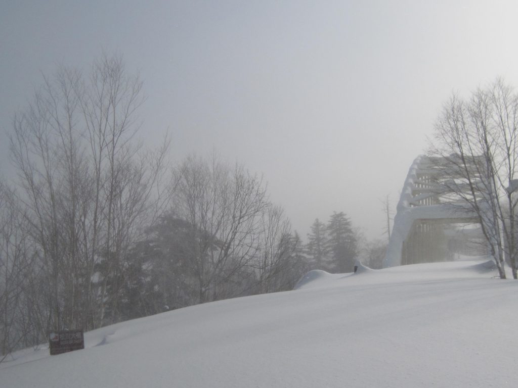数日前に大雪が降り、いよいよ雪山シーズンです。今日は松川温泉から奥産道に入りました。風雪の中、予想以上の大雪が出迎えてくれました。奥産道にはトレースが消えており、スキーでも50cmほどのラッセルです。林道を歩き、松川大橋まで行きました。そこから山に入ると、勾配のあるラッセルは、遅々として進まず、ただただ体力が消耗します。ストックを付いても、見えなくなるくらい雪にうずもれました。3時間ラッセルをして、目標の1447mには届かず、1260mで本日の目的地としました。帰路は途中からシールを外すと、深雪ですがふかふかの雪で、スキーが上達したように気持ちよく滑ることができました。